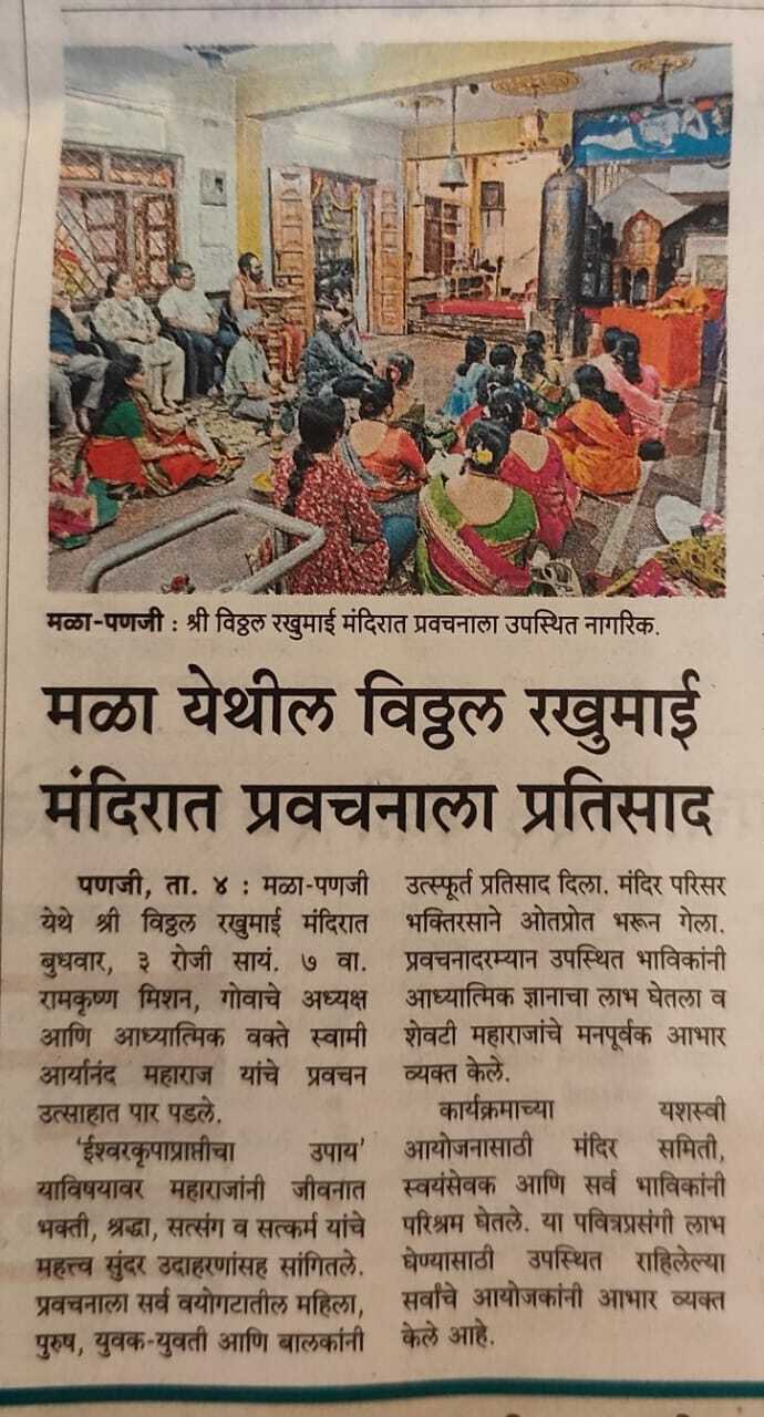 News about Ramakrishna Mission's activities, particularly the Yuva Jagriti Competition, was telecast on Goa Door Darshan on Tuesday, 15th July 2025, at 7 PM.